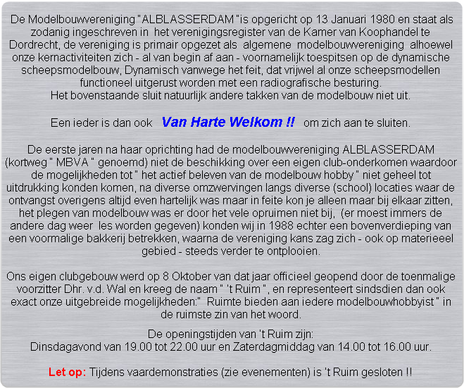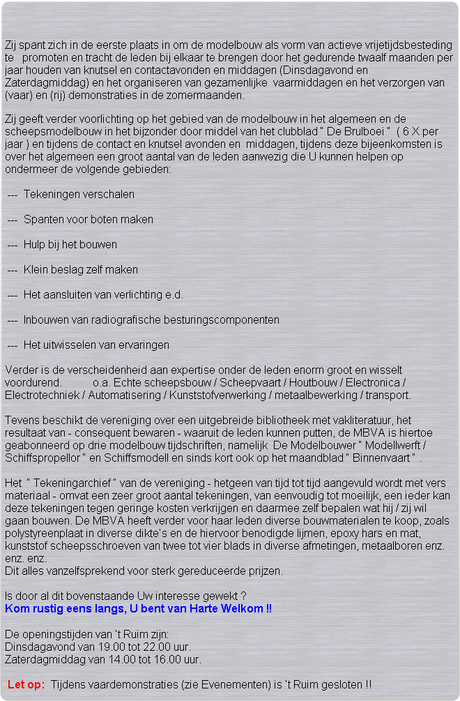 Of u nu de uitdaging aangaat om een zo realistisch mogelijk scheepsmodel te bouwen of juist het plezier vind in het varen met radiografisch aangedreven scheeps modellen. deze hobby heeft het allemaal, de keuze is aan u !!